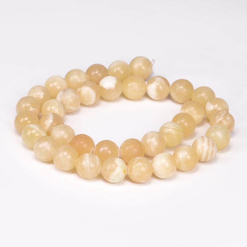 Намистини Нефрит жовтий, Натур. камінь, 10,5 мм, Круглі (BUS-056092) / 1 низка