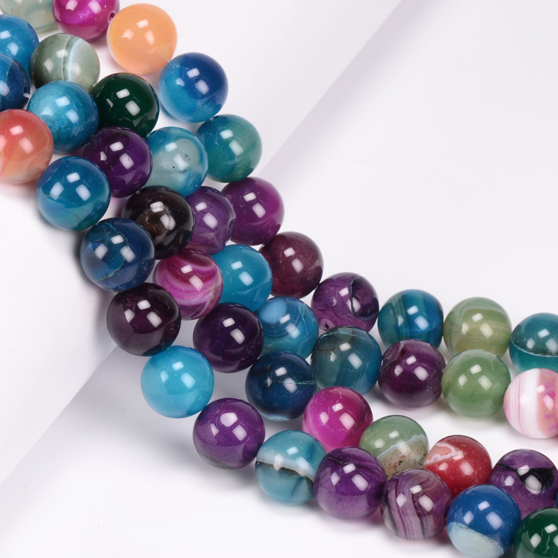 Намистини Агат різнокольоровий, Натур. камінь, 12 мм, Круглі (BUS-056095) / 1 низка