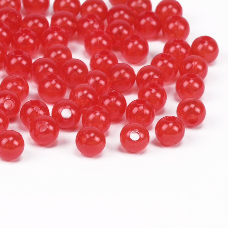 Намистини для сумок, Пластикові напівпрозорі, Круглі, 6 мм, Червоні (BUS-056161) / 1 уп (500 г)