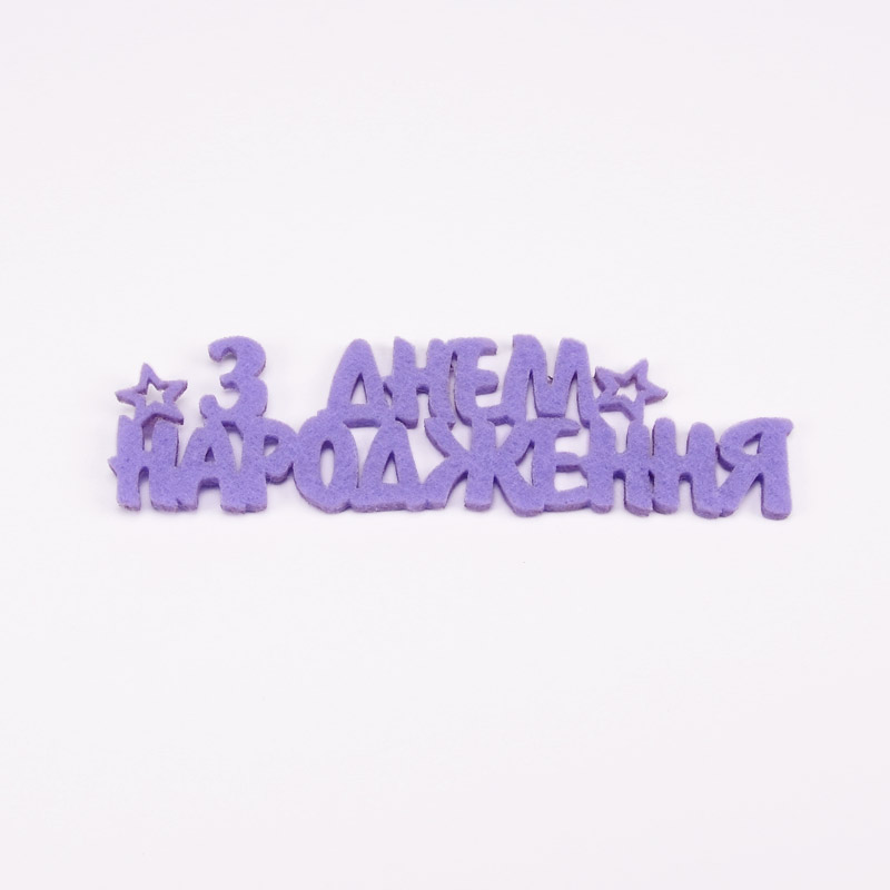 Декоративний виріб з фетру "З Днем народження", 10х3 см, Бузковий (FLT-056564) / 1 шт
