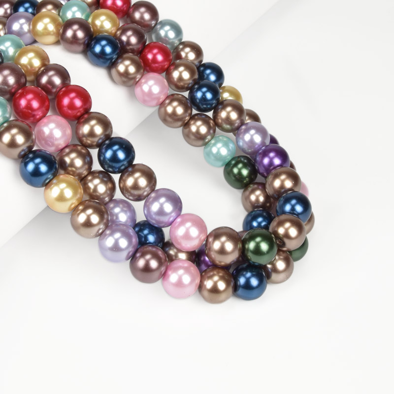 Намистини скляні Перли, 12 мм, Мікс, Круглі (BUS-056702) / 1 низка