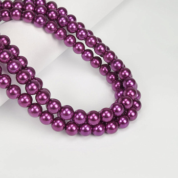 Намистини скляні Перли, 10 мм, Бузкові темні, Круглі (BUS-056705) / 1 низка