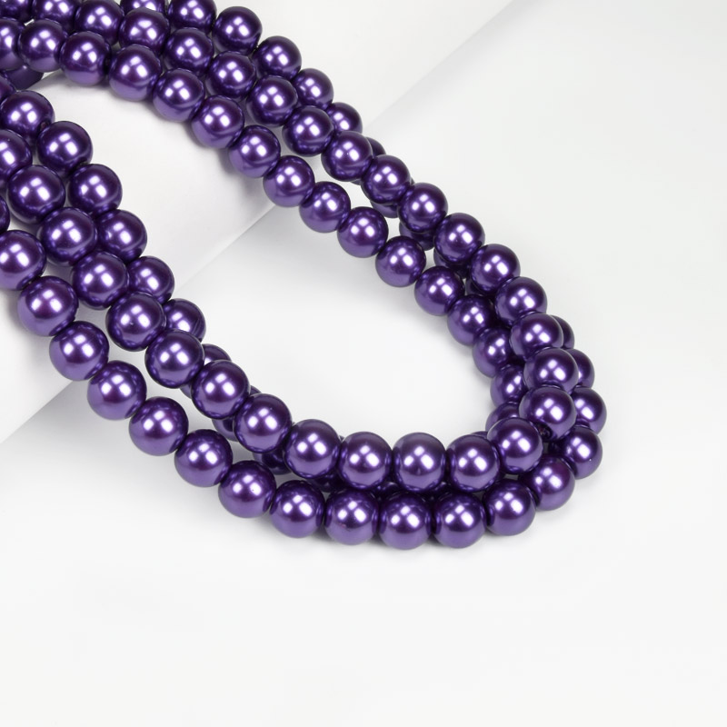 Намистини скляні Перли, 10 мм, Фіолетові, Круглі (BUS-056714) / 1 низка