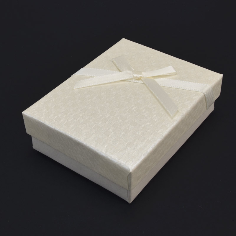 Подарункова коробочка Прямокутна з бантиком, 9х7х2,5 см, Кремова (UPK-056831) / 1 шт