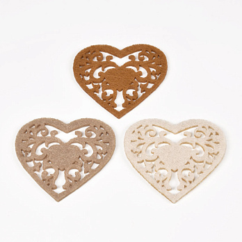 Декоративний виріб з фетру Мереживне серце, 5х5 см, Бежеве (FLT-057012) / 1 уп (3 шт)