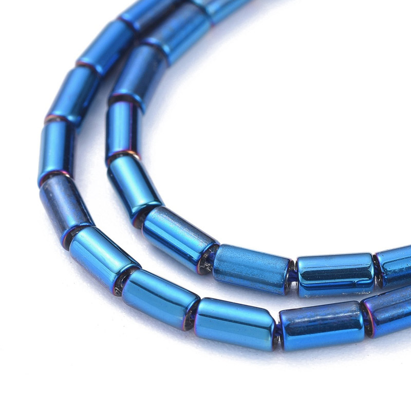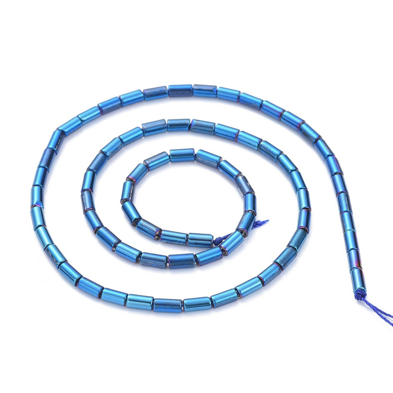 Намистини скляні, Циліндр, 4,5х2,5 мм, Сині (BUS-057493) / 1 низка