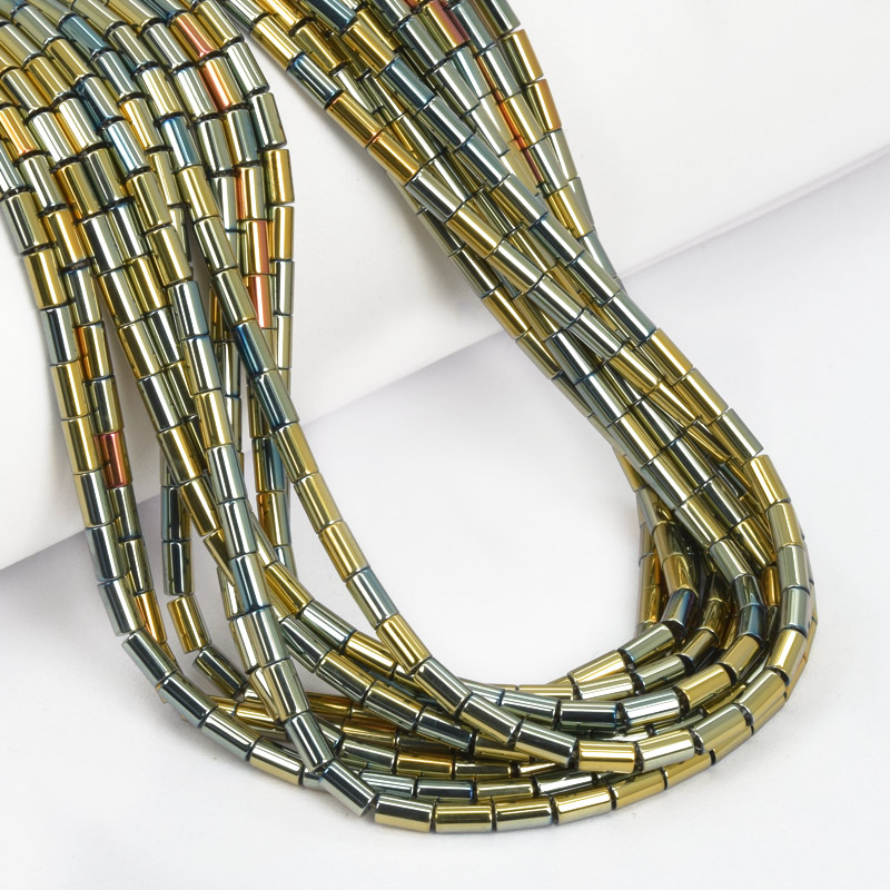 Намистини скляні, Циліндр, 4,5х2,5 мм, Ірис зелений (BUS-057495) / 1 низка
