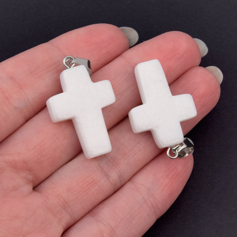 Підвіска Хрест, Натур. камінь Нефрит білий, 30х20х6 мм (POD-057954) / 1 шт