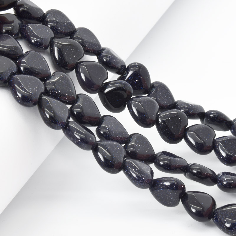 Намистини Авантюрин Золотий пісок синій, Синт. кам., 12х12 мм, Серце, 18 см (BUS-057976) / 1 низка