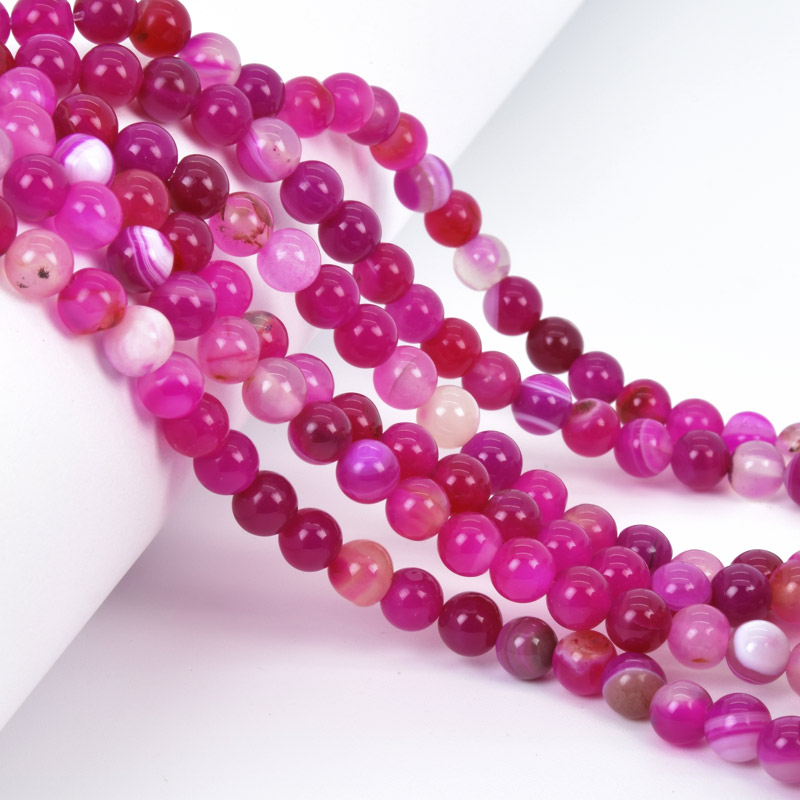 Намистини Агат рожевий, Натур. камінь, 6 мм, Круглі, 18 см (BUS-058040) / 1 низка