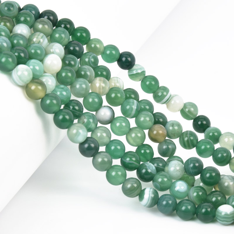 Намистини Агат зелений, Натур. камінь, 6 мм, Круглі, 18 см (BUS-058045) / 1 низка