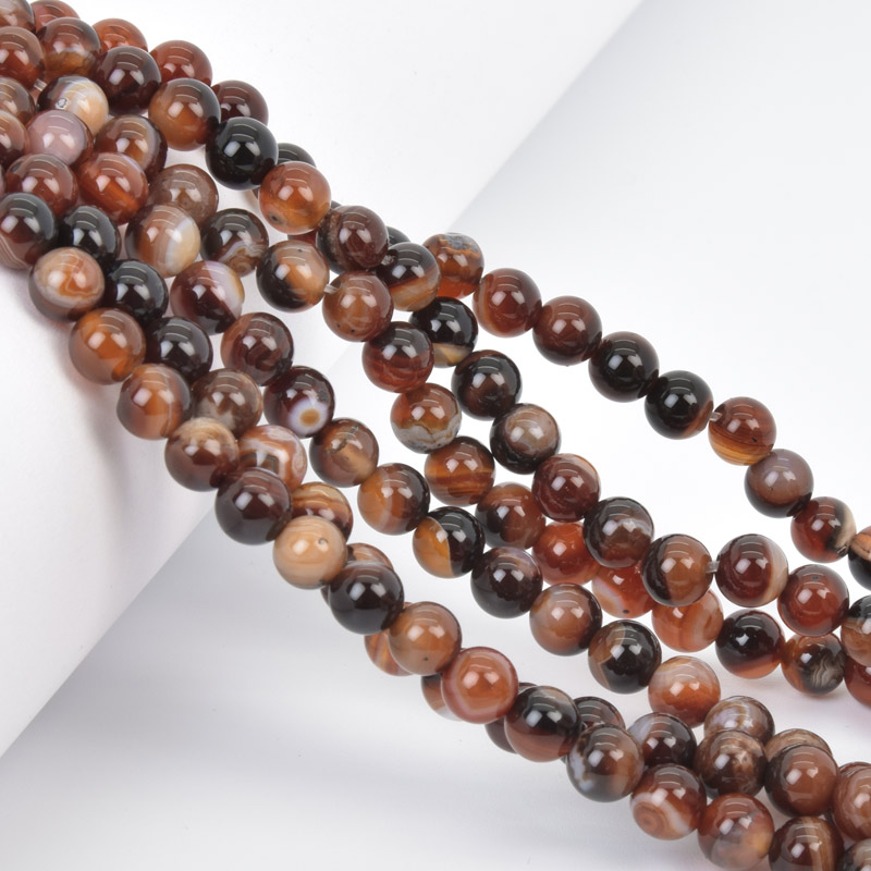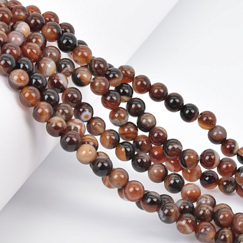 Намистини Агат коричневий, Натур. камінь, 6 мм, Круглі, 18 см (BUS-058047) / 1 низка