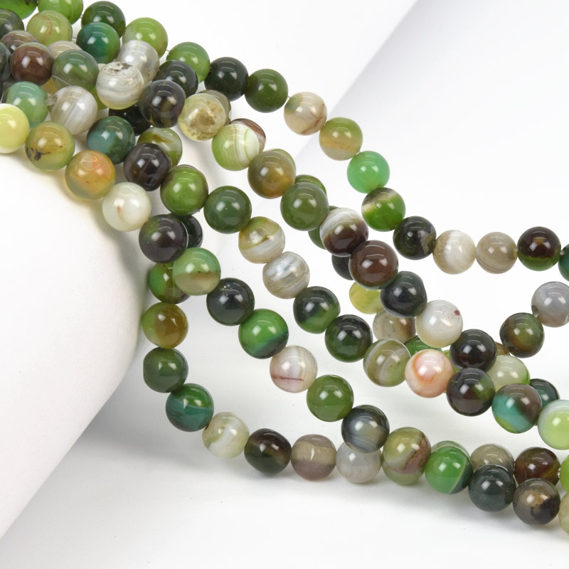 Намистини Агат зелений, Натур. камінь, 6 мм, Круглі, 18 см (BUS-058052) / 1 низка