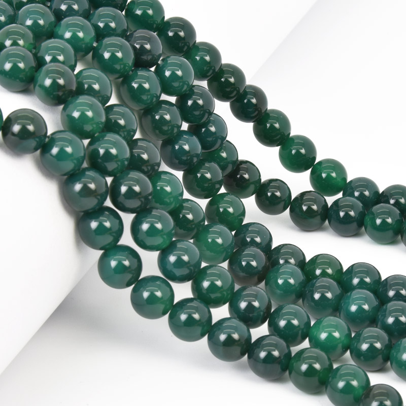 Намистини Агат зелений, Натур. камінь, 8 мм, Круглі (BUS-058086) / 1 низка