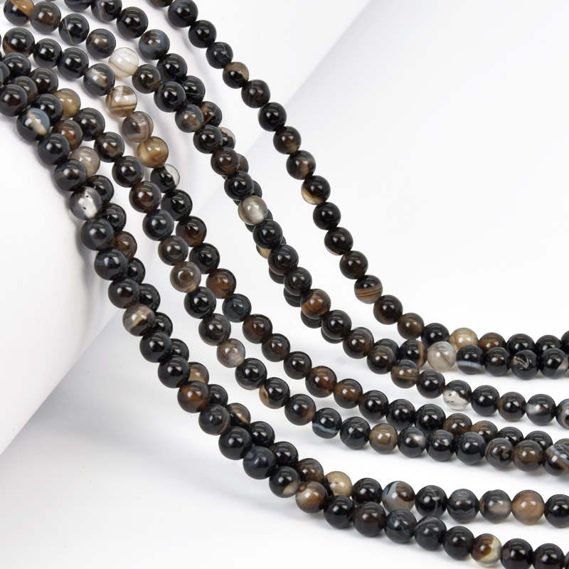Намистини Агат коричневий, Натур. камінь, 4 мм, Круглі (BUS-058089) / 1 низка
