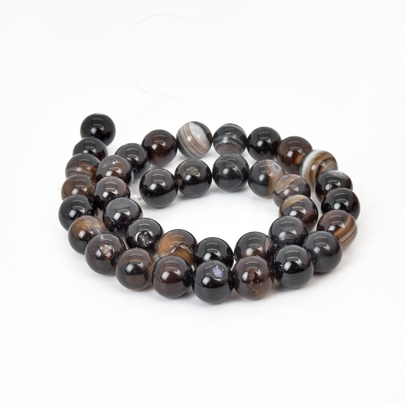 Намистини Агат коричневий, Натур. камінь, 10 мм, Круглі (BUS-058092) / 1 низка