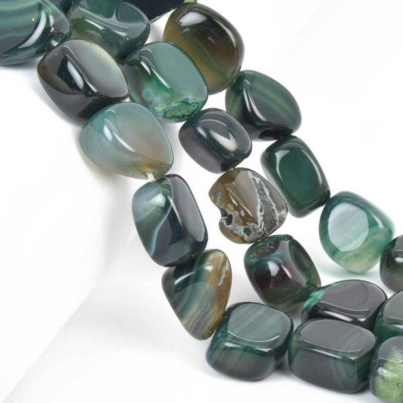 Намистини Агат зелений, Натур. камінь, 13-16 мм, 19 см (BUS-058146) / 1 низка