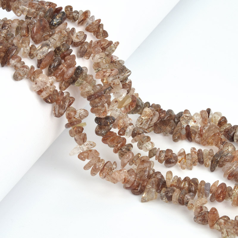 Намистини (скол) Кварц рутиловий, Натур. камінь, 5-10 мм, 38-39 см (BUS-058182) / 1 низка