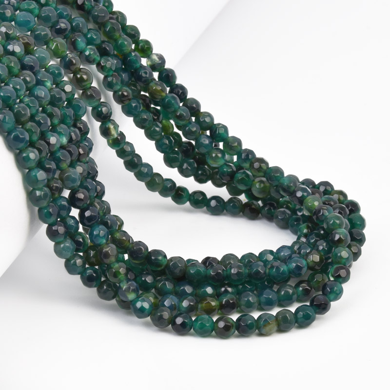 Намистини Агат зелений, Натур. камінь, 4 мм, Круглі грановані (BUS-058186) / 1 низка