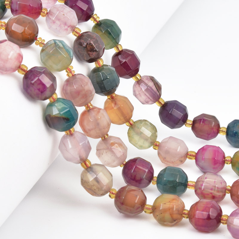 Намистини Агат різнокольоровий, Натур. камінь, 10 мм, Круглі грановані (BUS-058213) / 1 низка