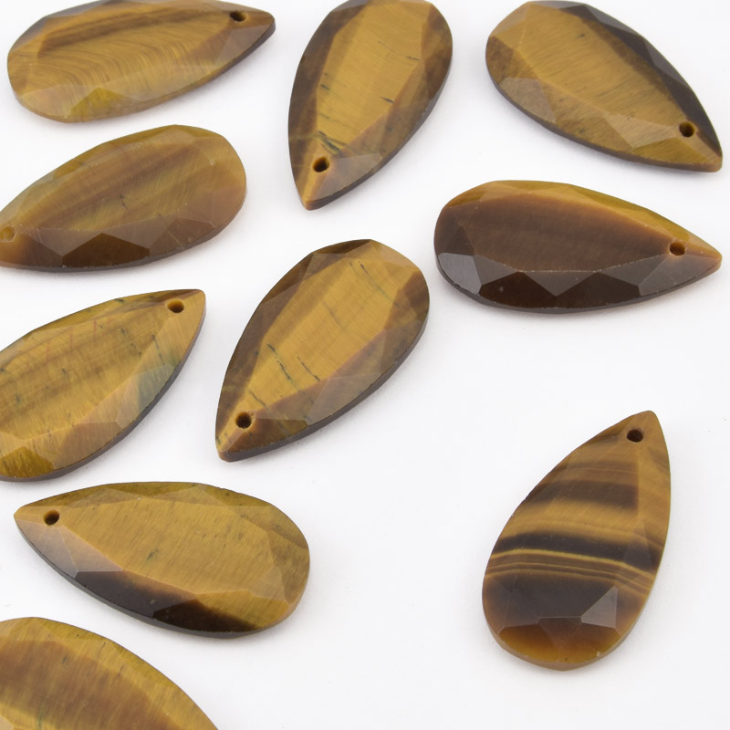 Підвіска Крапля гранована, Натур. камінь Тигрове око, 24,5х13 мм (POD-058668) / 1 шт