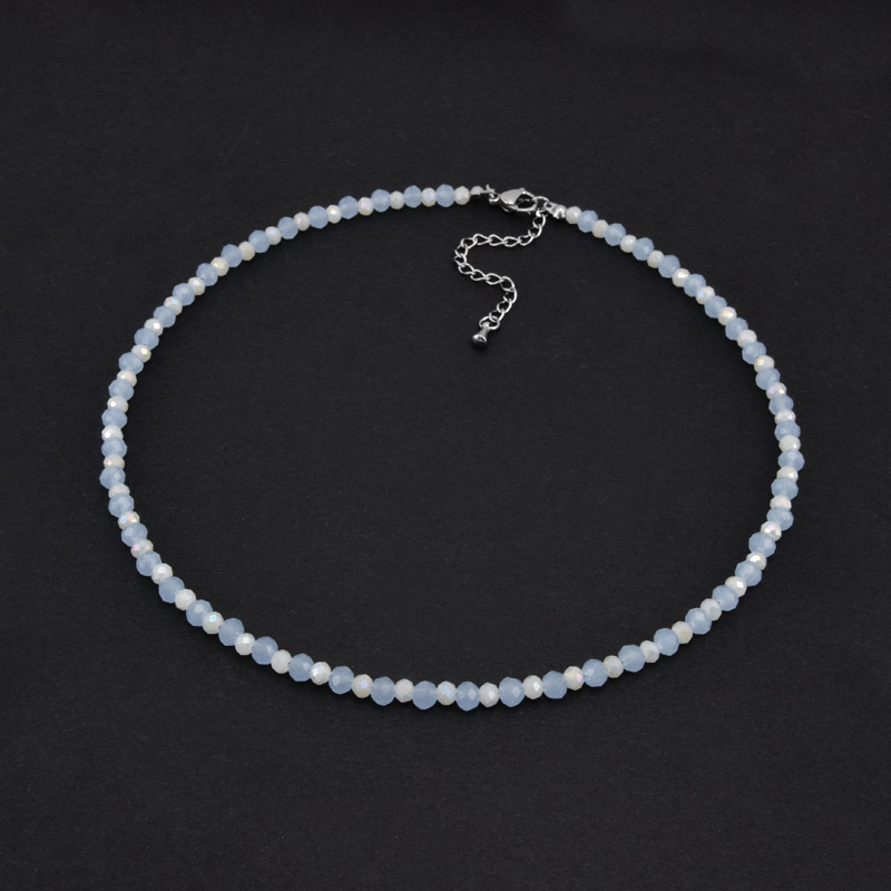 Чокер блакитний, Намистини скляні, 36 см, Нерж сталь (BUS-058755) / 1 низка