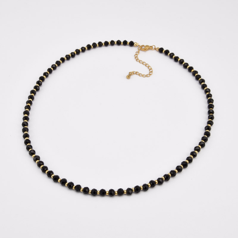 Чокер чорний, Намистини скляні, 41 см, Нерж сталь (BUS-058760) / 1 низка