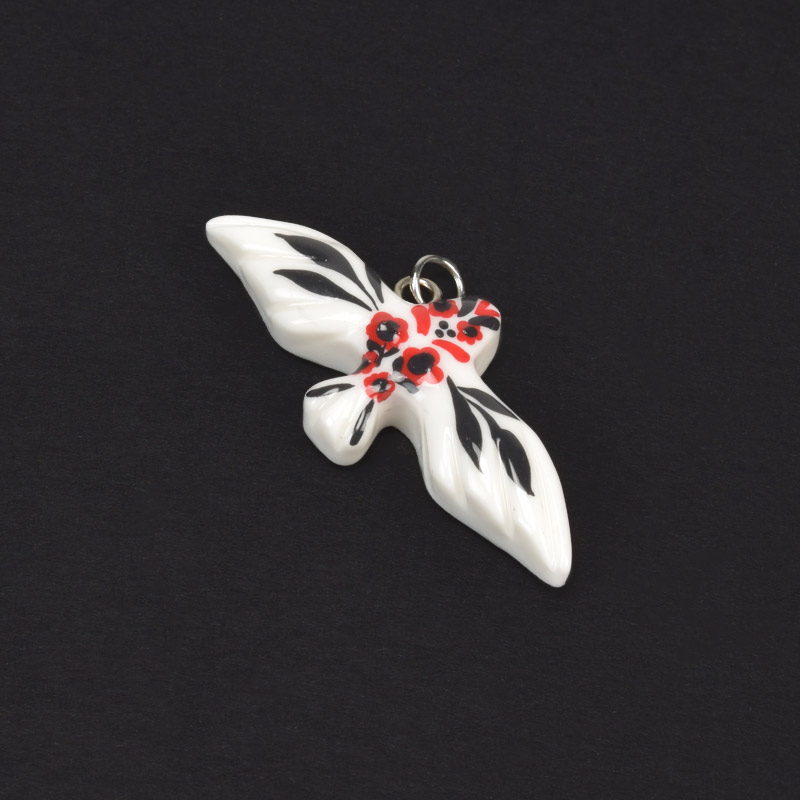 Підвіска Горлиця з полімерної глини, 39х17 мм, З малюнком (POD-059384) / 1 шт