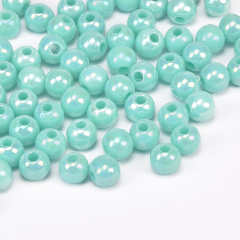 Намистини пластикові райдужні, Круглі, 6 мм, Бірюзові (BUS-059527) / 1 уп (5 г)