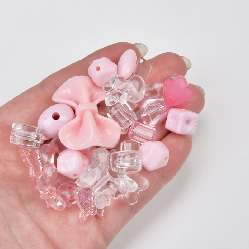 Намистини пластикові, Мікс рожевий (BUS-059568) / 1 уп (50 г)