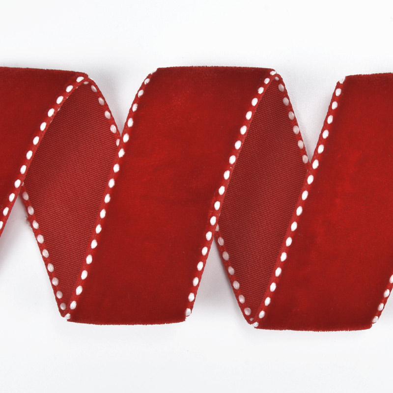 Стрічка оксамитова з кантом, 25 мм, Червона (LEN-060573) / 1 м