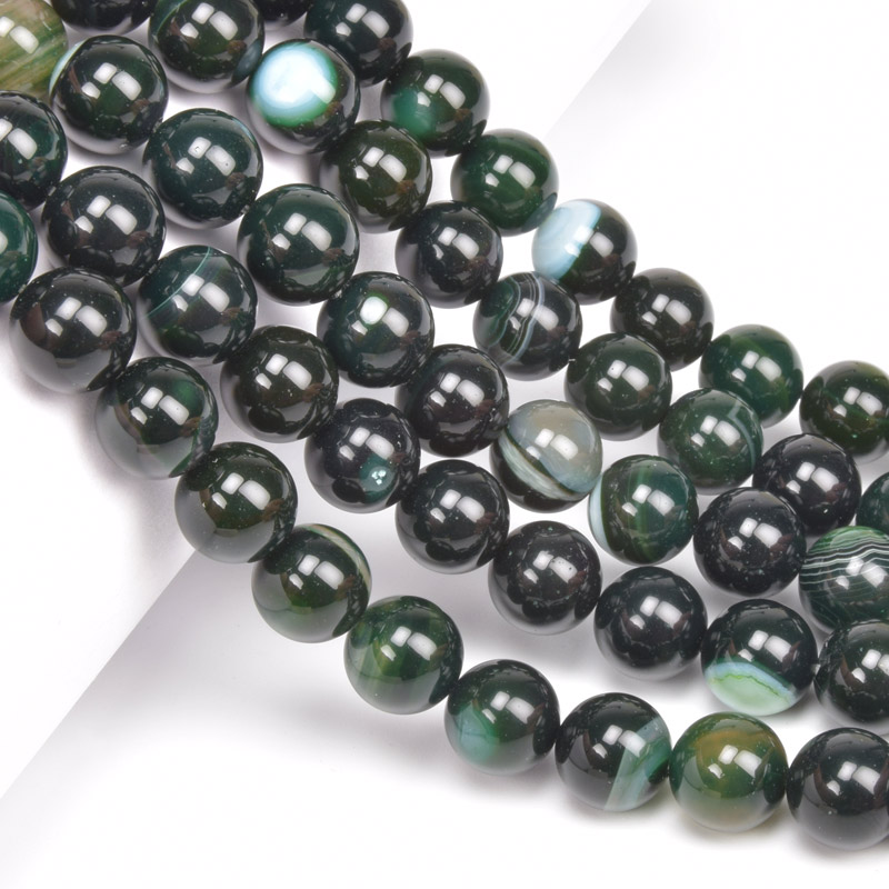 Намистини Агат зелений, Натур. камінь, 10 мм, Круглі, 19 см (BUS-060724) / 1 низка