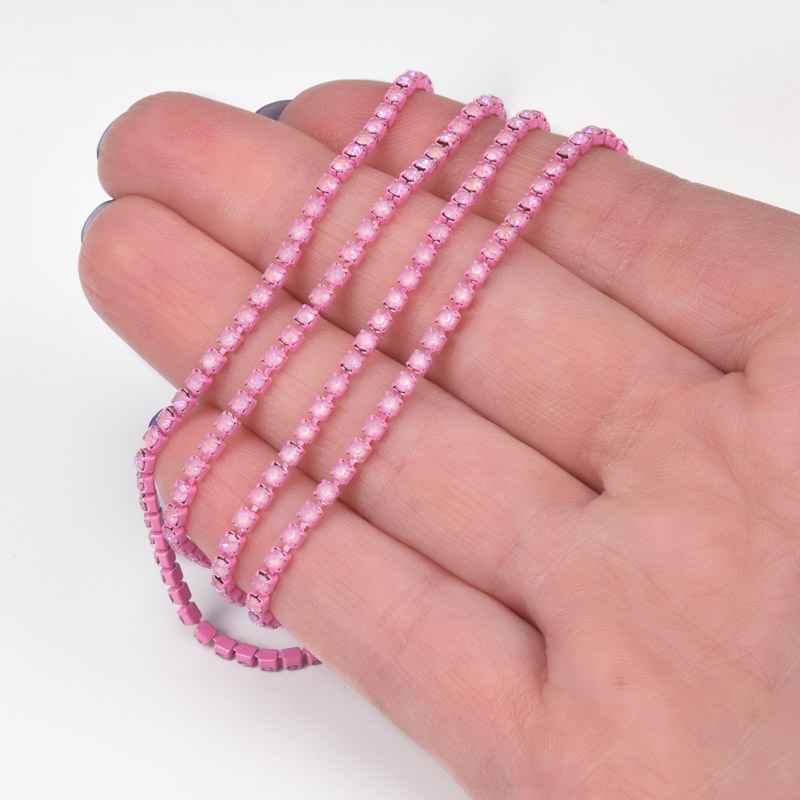 Стразовий ланцюг SS6 - 2,0 мм, Рожевий, Стрази скляні рожеві опал (ZEP-061030) / 1 м