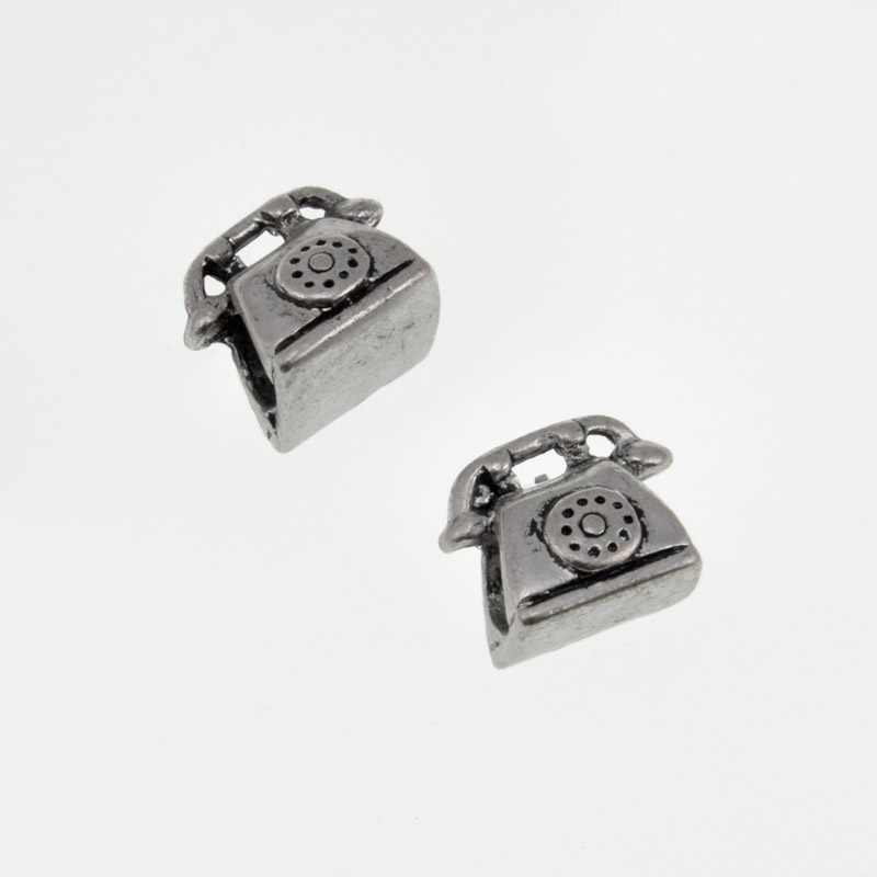 Намистини мет. Телефон, 12х10х10 мм, Античне срібло (BUS-007432) / 1 уп (2 шт)