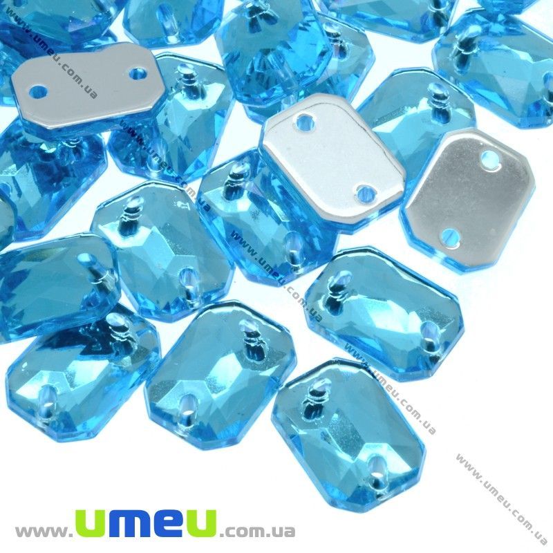 Пришивний кристал пласт. Прямокутник гранований, 10х8 мм, Блакитний (KAB-007961) / 1 шт