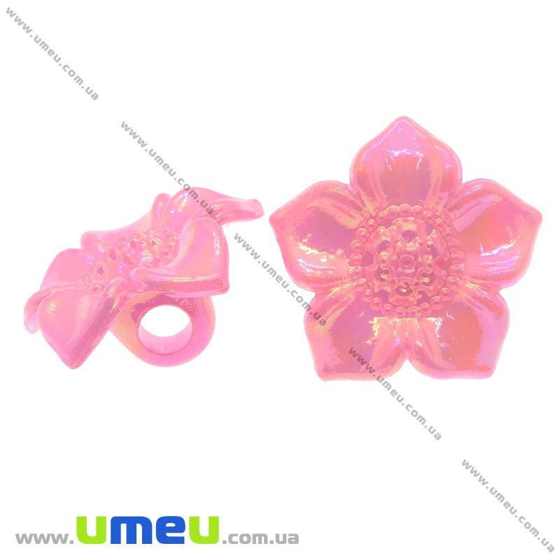Гудзик пластиковий на ніжці Хризантема, 17х10 мм, Рожевий АВ (PUG-008913) /