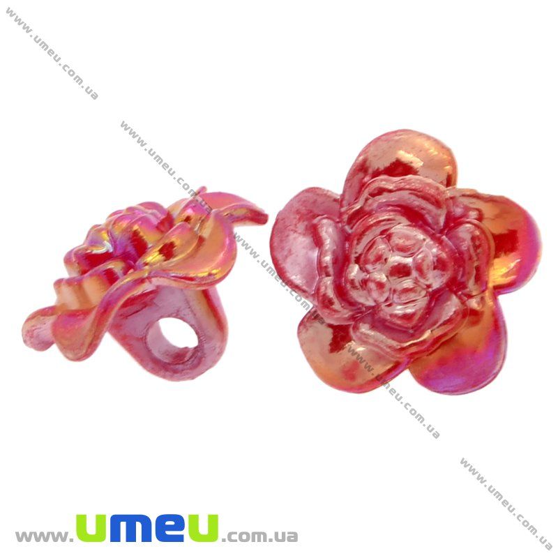 Гудзик пластиковий на ніжці Квітка Анемона, 17х11 мм, Червоний АВ (PUG-008931) /