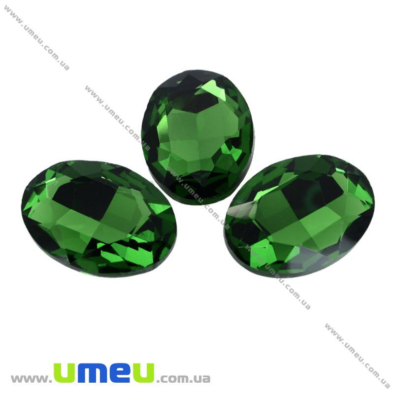 Ріволі скляний, Овал гранований, 25х18 мм, Зелений (KAB-009456) / 1 шт