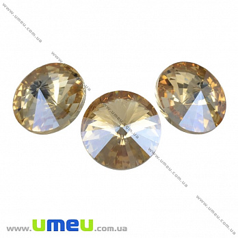 Ріволі скляний, Круглий гранований, 16 мм, Світло-бежевий (KAB-009469) / 1 шт