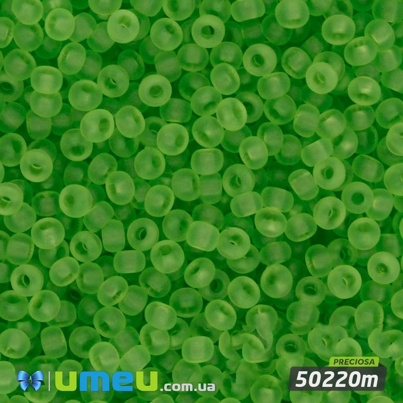 Бісер чеський №117m/50220m, Салатовий, Прозорий матовий, 10/0 (BIS-009491) / 1 уп (5 г)