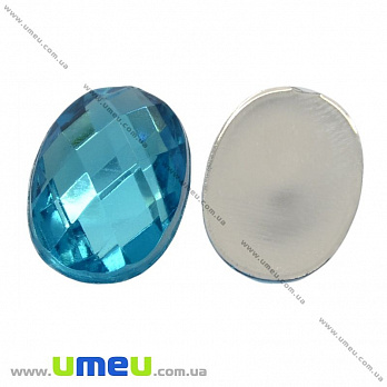 Кабошон пластиковий, Овал гранований, 14х10 мм, Блакитний (KAB-009508) / 1 шт