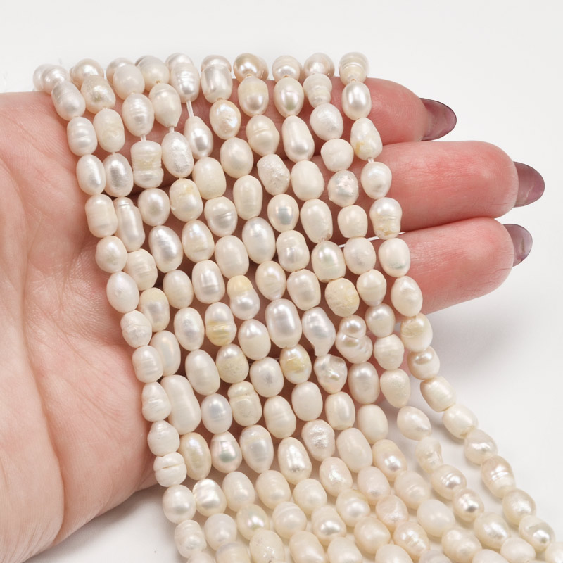 Бусины Жемчуг речной натуральный, Молочный, 4-5х6-7 мм (33 см) (BUS-053733)