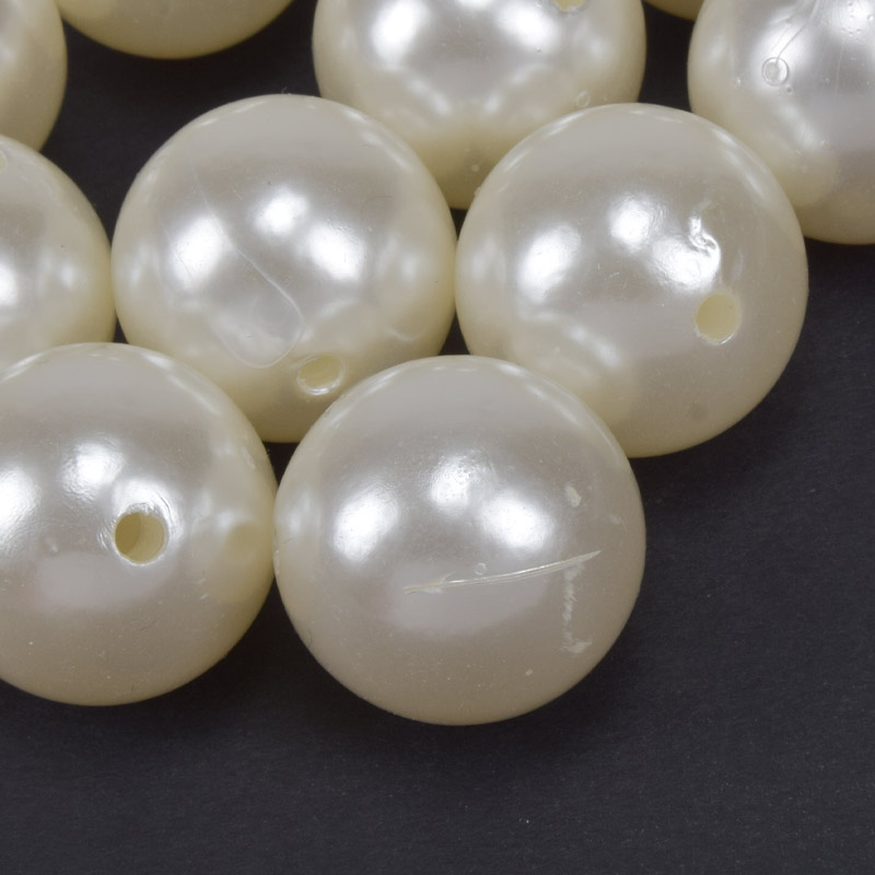 Бусины пластиковые, 2 сорт, Круглые Жемчуг, 24 мм, Кремовые (BUS-060902)