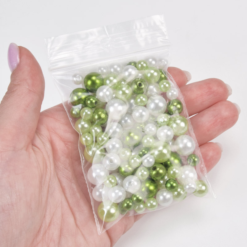 Бусины пластиковые Круглые, Жемчуг, 6-10 мм, Микс бело-зеленый (BUS-059765)