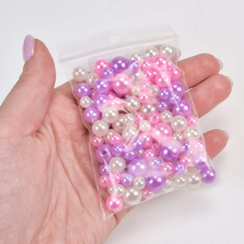 В миксе бусины размером от 6 до 10 мм.Бусины пластиковые Круглые, Жемчуг, 6-10 мм, Микс розовый (BUS-059766) / 1 уп (25 г)BUS-05976629.00₴ / уп (25 г) -