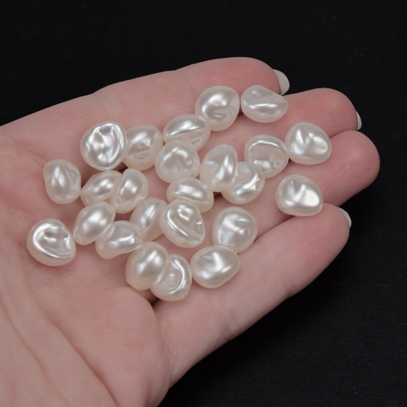 Барочный жемчуг - это жемчуг неправильной, часто ассиметрической формы.Бусины пластиковые, Имитация барочного жемчуга, 10,5х10х6,5 мм, Молочные (BUS-059869) / 1 уп (20 шт)BUS-05986916.00₴ / уп (20 шт) -
