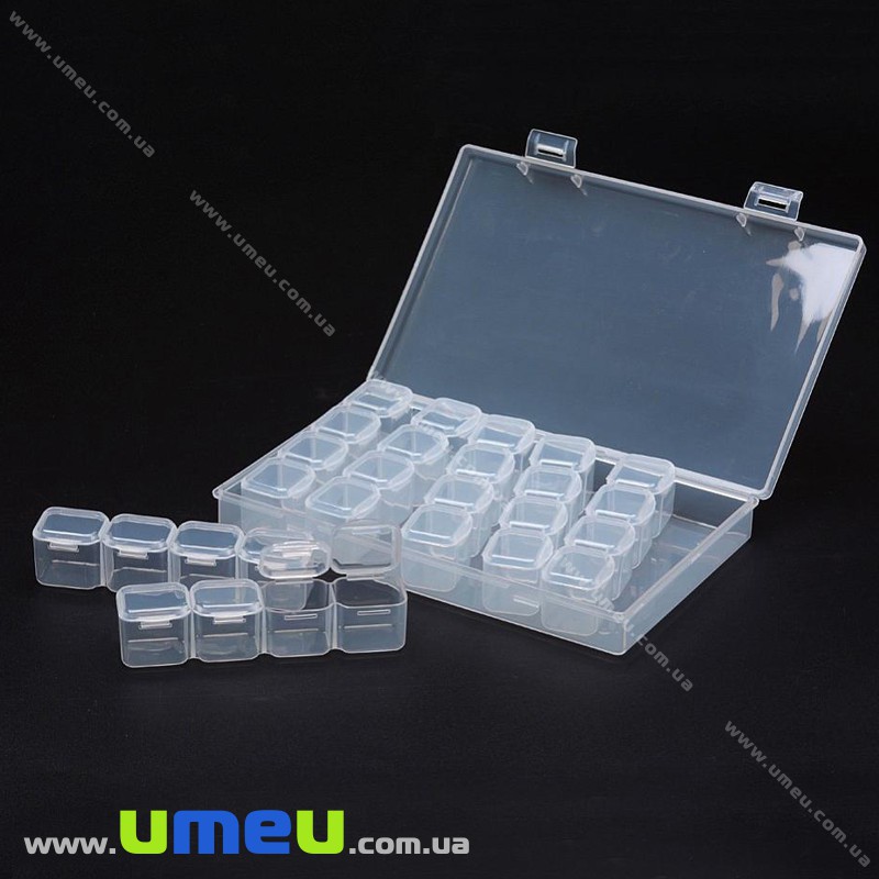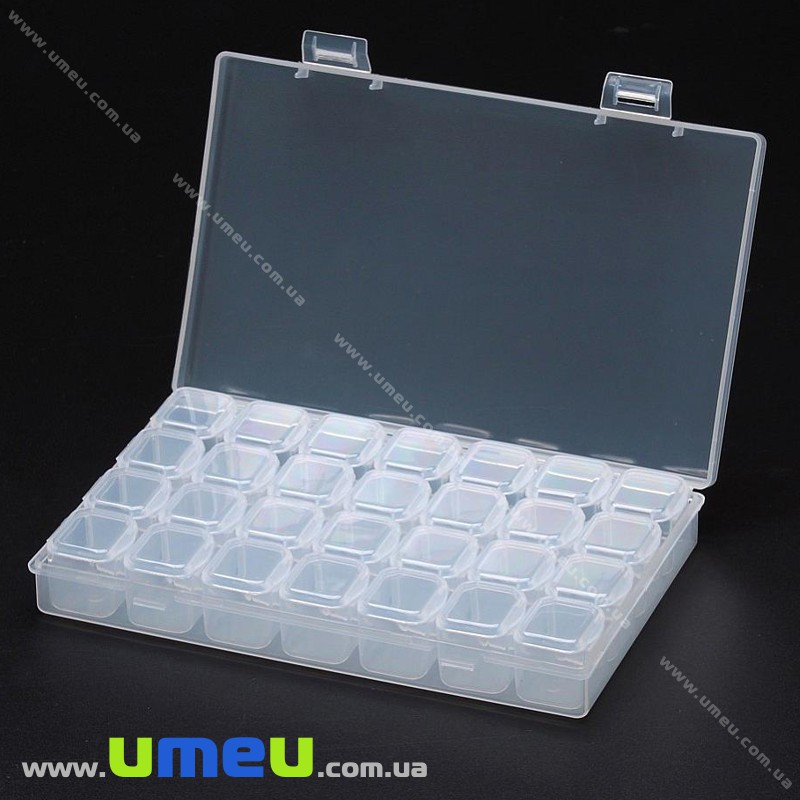 Ячейки соединены по 4 шт.Органайзер для хранения бисера на 28 ячеек, 17,5х10,5х2,5 cм (INS-024877) / 1 штINS-024877225.00₴ / шт -