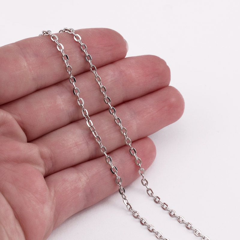 Данный товар можно купить оптом (при наличии на складе) – для этого выберите упаковку «1 катушка» (в катушке приблизительно 100 метров).Цепь, Темное серебро, 2,5х1,5 мм (ZEP-056061) / 1 мZEP-056061 Кратно 0.1 едДанный товар можно приобрести