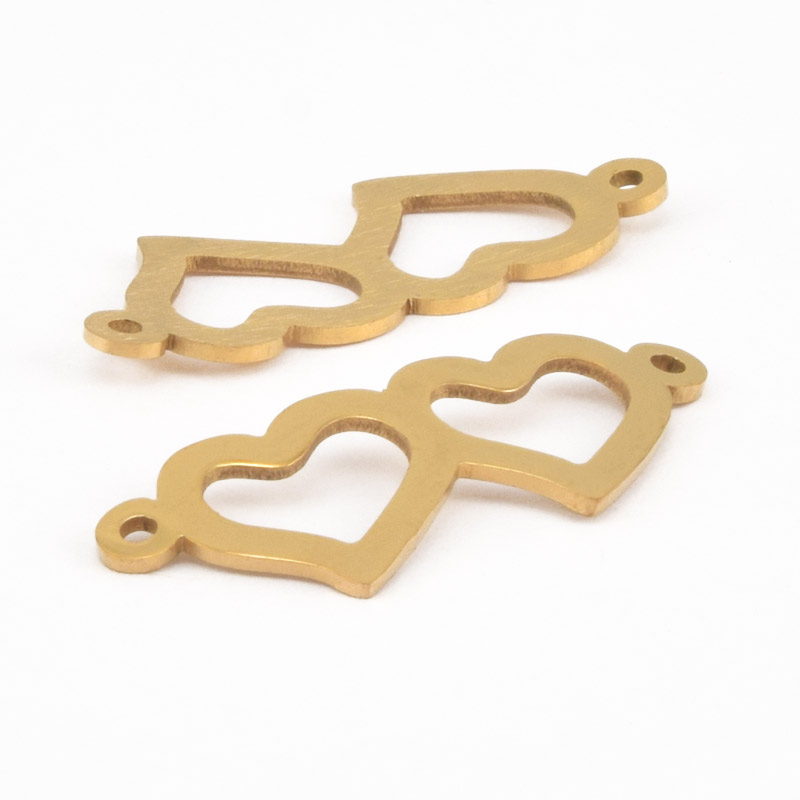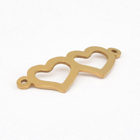 Коннектор из нерж. стали Сердца, 32х12 мм, Золото (STL-061419)