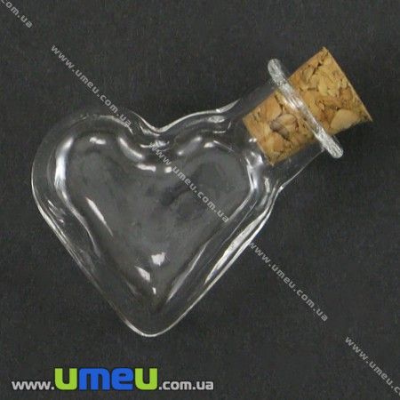 Стеклянная баночка Сердце, Прозрачная, 24х20 мм (DIF-001867) / 1 шт